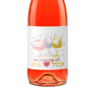 תווית אישית ליין רוזה – יום האהבה כוס יין ולבבות