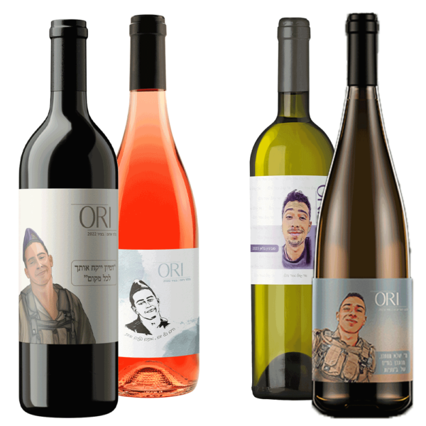 ארבעה בקבוקי יין שונים לזכרו של אורי ג'רבי.