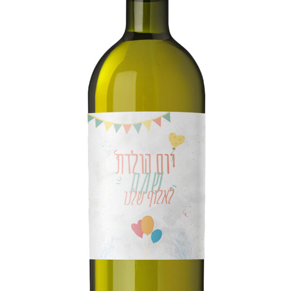 תווית ליין יום הולדת שמח עם הקדשה או מסר אישי. התווית מודפסת אצלנו במדפסת מיוחדת ומודבקת על גבי התווית הקיימת או ישירות על הזכוכית ביינות שלנו.