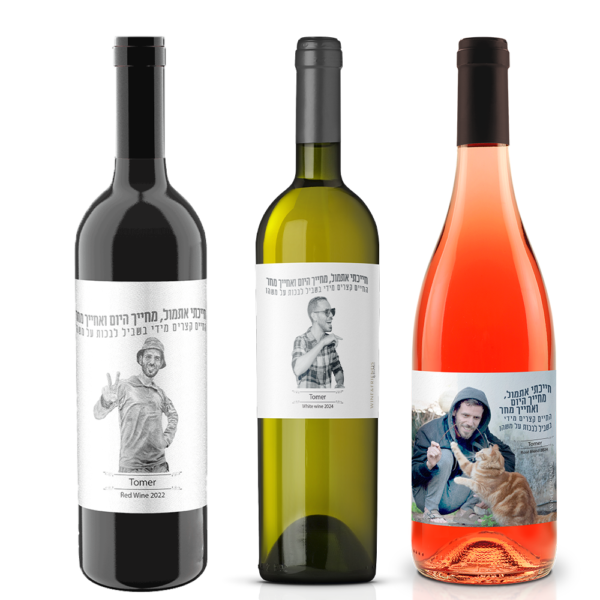 שלושה בקבוקי יין שונים (750 מ"ל כל אחד) לזכר תומר שלמה מיארה. שני יינות לבנים, שניים אדומים ואחד רוזה.