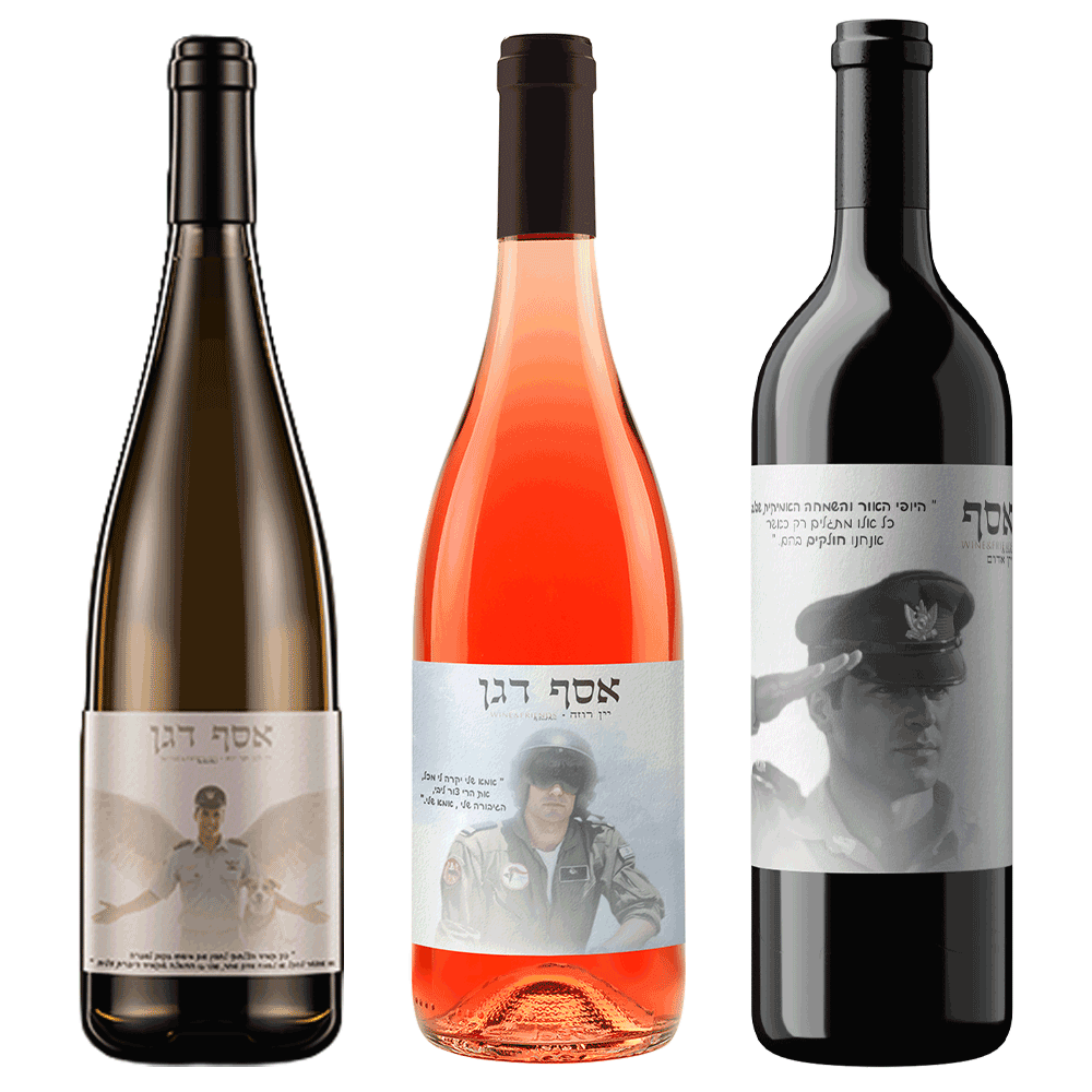 מארז שלישיית בקבוקי יין לזכר רס"ן אסף דגן הי"ד.