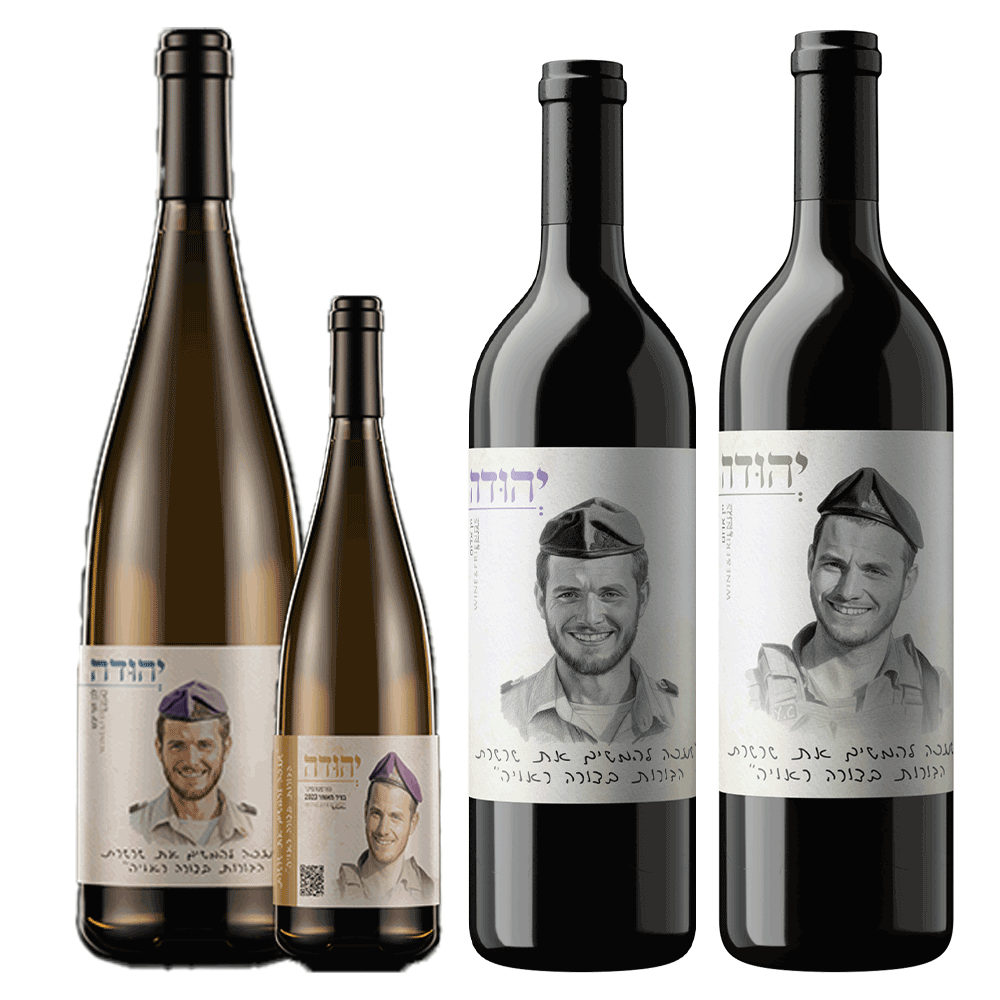 מארז רביעיית בקבוקי יין שונים לזכר רס”ן יהודה נתן כהן הי”ד.