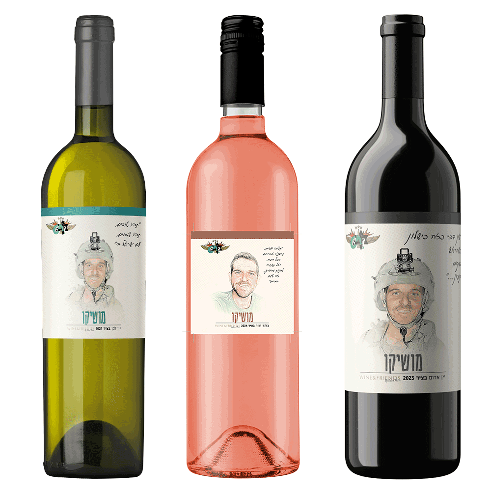 מארז יין לזכר רס”ן מושיקו רוזנוולד. שלושה בקבוקי יין איכותיים לזכרו.