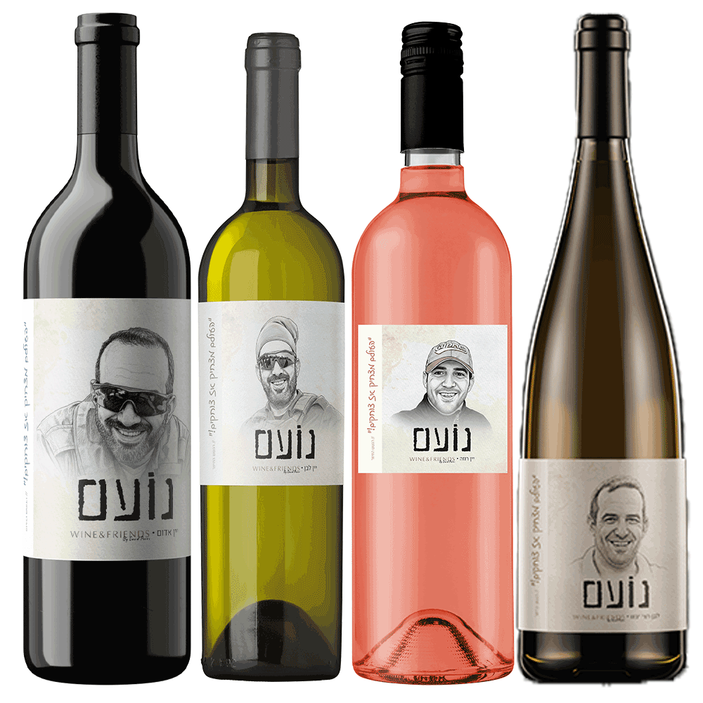 ארבעה בקבוקי יין, שני לבנים, רוזה ואדום לזכרו של נועם אשרם.