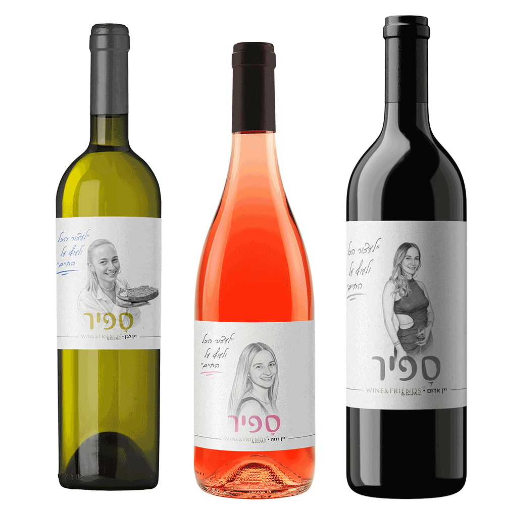 מארז יין הכולל שלושה בקבוקי יין שונים לזכרה של ספיר בילמס ז”ל.