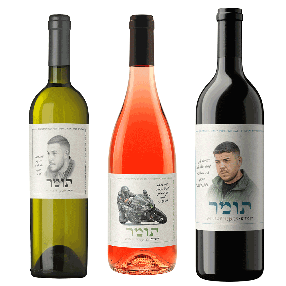 המארז כולל יינות לבן ואדום המיוצרים בשיתוף פעולה בין יקב גוש עציון ל Wine & Friends ורוזה בשיתוף עם יקב בן דוד: