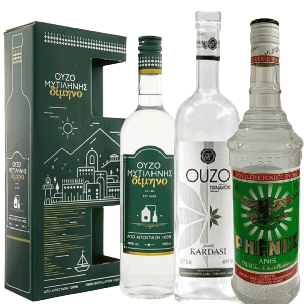 אוזו דימינו-מיוצר מזרעי אניס ותבלינים המגיעים בעיקר מהאי לסבוס, ללא תוספת סוכר ומיושן לתקופה של חודשיים, זהו אוזו עדין ומאוזן בעל סיומת טעם ארוכה וטעמי אניס בולטים, מלווים במעט מליחות וג’ינג’ר. 700 מ”ל. 40% אלכוהול. לאוזו מצורפות שתי כוסות זכוכית.