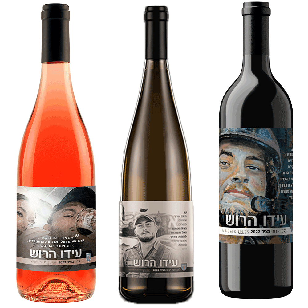 שלושה בקבוקי יין לזכר עידו הרוש.